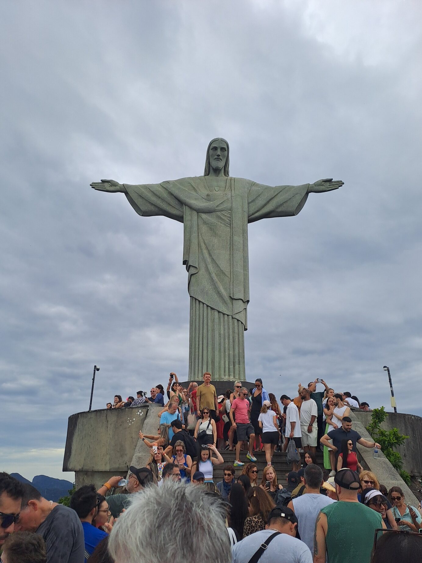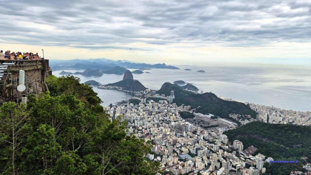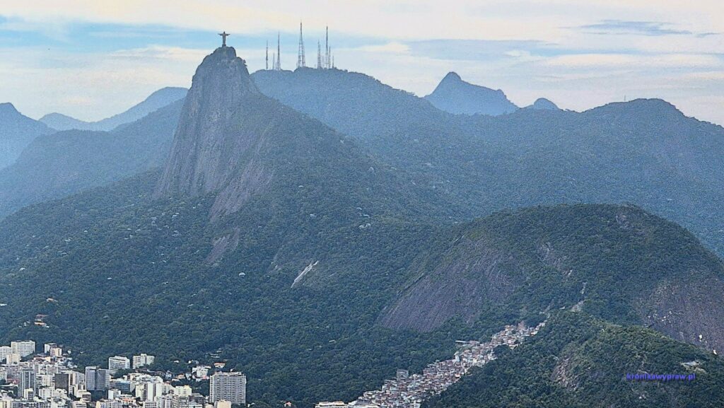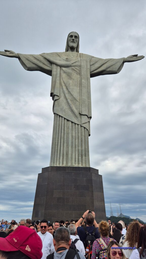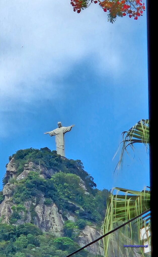 Ale nie samą plażą turysta żyje, następny dzień przeznaczamy na wjazd na górę Corcovado na której znajduje się posąg Chrystusa Zbawiciela i oglądanie widoków z niej. Wysokość góry to 720 m a sam posąg ma 38 m. Mały – w Polsce jest większy – 52,5 m. Na szczęście na górę nie trzeba wdrapywać się pieszo, jedzie się pociągiem a potem jeszcze schodami ruchomymi ( za ok. 100 zł). Chętnych do oglądania atrakcji jest zawsze dużo, więc trudno zrobić dobre zdjęcia, bez tłumu.