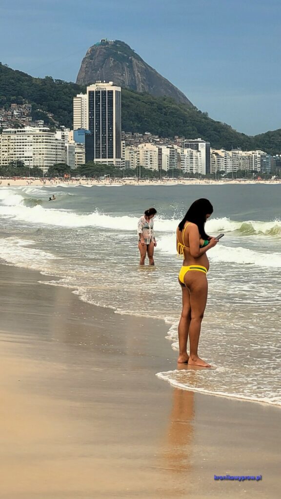 Do Rio de Janeiro dolecieliśmy w południe, szybki transport uberem do hotelu w dzielnicy Copacabana (w Brazylii jeździ się uberem, bo jest taniej niż transportem miejskim – szczególnie jak jest się w 4 osoby) i mogliśmy udać się na zwiedzanie plaży, tej plaży.